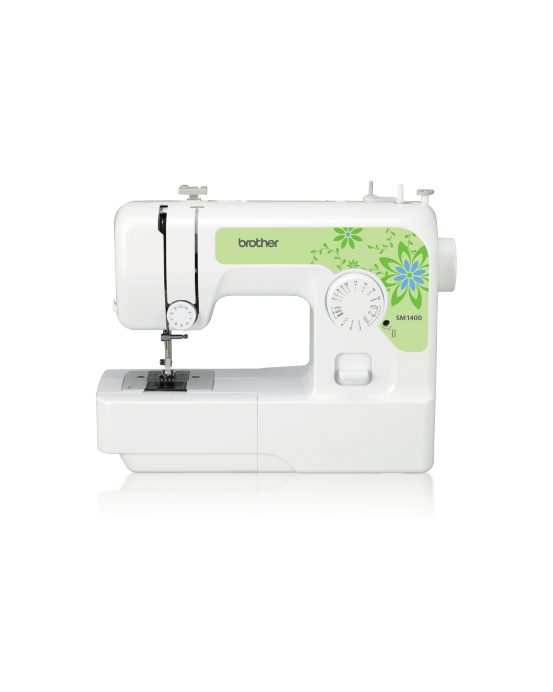 El SM1400 ofrece el conjunto perfecto de funciones para coser y remendar todos los días, a un precio asequible. Ligera pero de tamaño completo, esta máquina puede caber fácilmente en una mesa o escritorio, luego ser transportada y almacenada cuando no está en uso. Se incluyen 14 puntadas para dobladillos ciegos, puntadas elásticas, ojales, inserción de cremalleras y más. Seleccionar sus puntadas es tan fácil como girar el dial, y el dial de control de tensión y la palanca de costura inversa le brindan un control adicional al alcance de su mano.